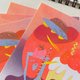 把這期間喜歡的畫面畫成卡片,適合夏天的氣氛,大大的草莓月亮,挖了一口,一起戀愛吧,在這繽紛的夏季,帶著一束清新的紫花束,在咖啡廳曬曬陽光、享受微風的吹拂,喝著喜歡的飲料,是喜歡的人去過的地方,留下的碎片也存在回憶中,接著在街道上走啊走,累了的話就在休息一會吧!再喝個很甜很甜的奶昔,是與大家一起的時光,是很開心的自己,哪一天又遇到了不順遂的一天,就再喝一口奶昔吧,想起那時的時光,想起那份快樂,在屬於自己的角落看著熟悉的畫面。