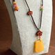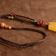 精選天然原礦隨型帶原皮且手搓帶香天然琥珀。色澤原皮部分為正黃色,色彩均勻,色澤干淨明豔,形狀為上小下大的長方形,自然隨性,材質緊密,原皮手感熨帖,皮紋細膩,無紋路,皆為細膩平滑小顆粒,兩面皆有凹凸感,一面略平滑另一面凹凸感更強烈,有一種古樸天然之感,兩面皆可佩戴。在未精細打磨的皮紋上用手揉搓生熱,會聞到有淡淡的特殊的香味產生。搭配天然紫檀雙面雕花件,天然碧玉圓珠,天然南紅櫻桃紅圓珠,天然菩提根祥云雕刻件,整款項鏈古典內斂,淡雅寧靜,有一種自然隨性,時光流轉的美感。