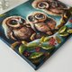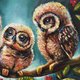 What a cute company of three lovely owls sitting on the branch! This whimsical painting was made by me with professional acrylic paints on a stretched cotton canvas. The artwork is original, highly detailed, and mysterious. The plot is one of a kind.