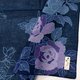 This vintage Japanese handkerchief features a refined design of roses (Bara) in a striking monotone palette. The blossoms are illustrated in monotone color scheme – creating harmony in indigo, purple, and blue hues, with a mix of bold filled petals and delicate line-drawn outlines. Set against a deep navy background, the roses appear both modern and traditional, evoking the elegance of Japanese textile art. The balance between filled blooms and sketched outlines creates a poetic, dreamlike atmosphere.