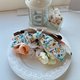 使用兩款美國品牌的棉布為主體製作成綁帶蝴蝶結、搭配精緻蕾絲、多款織帶和釘珠做成的抓夾,氣質浪漫,走在路上不會到處撞款。