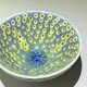 此作品是透過四到五層不同的釉藥層層堆疊,藉由每層施釉厚薄拿捏,並窯燒至1260度,歷經20小時的烈火淬煉,讓它在窯裡收縮流動,產生出孔雀羽毛的斑紋與流動感。