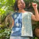 令人驚嘆的手工編織大麻紮染藍色半面與另一面靛藍手工刺繡舒適襯衫。漂亮簡約的復古設計,方便日常穿著。