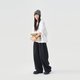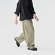 480克重磅水洗休閒闊褲,採用寬鬆大直筒褲型搭配雙壓褶,視覺呈現俐落的垂直線條感,褲身通過結構性褶皺設計,呈現獨特的立體感,打破常規褲型的侷限。採用480克斜紋棉布製作而成,通過水洗呈現出復古元素色系。褲頭採用同色系鬆緊抽繩,可調節鬆緊。褲腳微微向內收窄的剪裁細節,製造穿搭造型中的堆疊感。