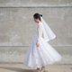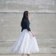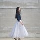 立體蕾絲刺繡澎裙,精緻設計,以異質材料推疊層次,增加走動時擺動的輪廓線。適合婚禮及各式重要餐會、宴會穿著。