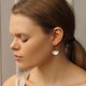 這對裝飾藝術風耳環採用純淨珍珠母貝,雕刻成簡約的扇形波浪邊設計。珍珠母貝表面光澤迷人,在光線下散發柔和光輝。耳環配有鍍金耳鉤,垂掛於耳垂下方,長度約 45 毫米(近兩英吋)。