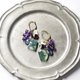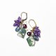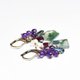 モスアゲートとたわわなアメジスト、カイヤナイト、ラブラドライト、ハーキマーダイヤモンド、ガーネットを繋いだピアスです。