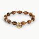 橄欖木珠子的豐富木色調與金色珠子間隔,加上十字架的耀眼光澤和溫暖色調相得益彰,為設計增添了一抹宗教象徵。