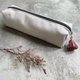 高質感軟質布料+皮革小流蘇 文具袋/筆袋