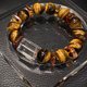 虎眼石是一種石英集合體,是青石棉滲入石英中所形成。因青石棉的滲入,會形成茶黃色與黑色的條紋相間,散發出貓眼光芒,每顆虎眼石都放射一道嚴峻的光,像嚴厲的的眼神,更像神秘的界限。
