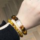 黃虎眼石圓珠+淨體白水晶立方塊+花珀方片珠