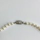 オールノットネックレスの特徴として、万が一、糸が切れた場合でも最小限で抑えられる点や、玉同士が密着していないので擦れあいにくく傷も付きにくい点、首回りにフィットしやすくなっている点等がございます。この仕様は特に海外で人気があり、比較的高品質アクセサリー類によくみられる仕様です。弊社の自社工場にて塗装したパールになります。品質の状態も維持されており、剥がれや大きな目立った傷などもございません。稀にピンホールや小さい凹み等が見られる場合がございますが、自社にて検品の上、品質に問題は無く許容範囲とさせて頂いております。