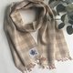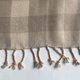 Natural beige X ecru color gingham check and cute fringes which rolled orange color yarn.