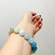 如晨光灑落心湖,這條多色摩根石手串,是一場色彩與心靈交織的輕語。由粉、藍、綠、黃、藍綠色調的摩根石組成,每一顆珠子都像是情感的結晶,柔和、通透、溫潤如初戀。