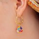 以 彩色花球造型 為靈感設計的玻璃圈式耳環,配戴時隨步伐輕盈搖曳,為耳畔增添華麗光彩。精緻小巧的花球裝飾,讓臉部周圍瞬間明亮,無論日常或聚會場合,都能展現迷人魅力。