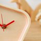 時鐘的邊緣立起部分並非垂直,而是帶有一點線條,是連細節也經過思慮的纖細設計。經由職人的雙手一個一個仔細修飾而成的滑順形狀,讓看了的人都為之著迷。對使用者的安全也充分考量,木板之間的黏著都沒有使用會造成病態建築物症候群的材料,敬請安心。