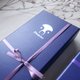 |品牌燙銀禮盒,深藍色細珠光紋紙(實品近似#1a1b32色號),尺寸約19 x 11 x