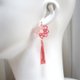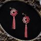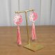 輕盈的耳針結合了梭織蕾絲圖案和兩種粉紅編織的流蘇。