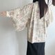 日本製和風印花薄款米黃色古著羽織和服外套-H469