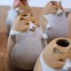 一隻隻圓滾滾、超愛吃的橘白貓。
