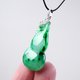 【名稱】冰飄陽綠花翡翠葫蘆項鍊 18K金鑽石 【尺寸】整體尺寸:49.8x20.5x11.3mm 裸石尺寸:39.4x20.5x11.3mm 【產地】緬甸 【顏色】綠 【備註】天然緬甸玉翡翠A貨/18K金鑽石鑲嵌/附贈皮繩 【編號】天母店展