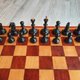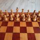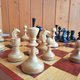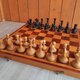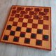 - Old wooden chess set middle-sized. Made in USSR. Chess board 40 x 40 cm with chess square 44 mm and height of the 83 mm king chess piece. Red black wooden Russian antique checkers 1950s. Valdai city, Novgorod region, RSFSR. Nobles chess pieces.