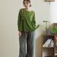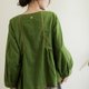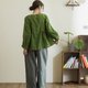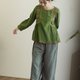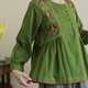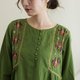Pakka手工刺繡綠色側摺上衣 - 女上衣/長袖上衣 - 棉.麻 綠色