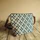 手工縫製托特側肩包帆布手袋 藍色懷舊印花圓型圖案