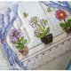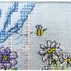 This pattern has pretty much backstitching and 5 French knots. Tiny bees are stitched with petite stitches one over one.