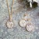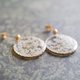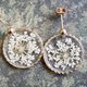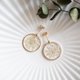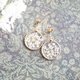 白いレースフラワーを押し花にして、カット模様の入った丸いパーツに樹脂でとじ込めたシンプルなアクセサリー。