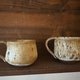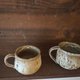 強烈的鐵斑在火的陪伴下, 用力從土及白釉中鑽出來, 好像黑咖啡磚泡在牛奶裡, 還原焼 1230度