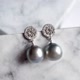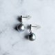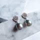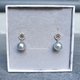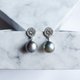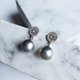 **天然灰藍色近圓大溪地海水珍珠純銀耳環**