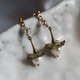 - 黃銅色澤與飽滿圓潤珍珠光澤,鋯石點綴其中,橄綠花萼包覆著珍珠,小小展現可愛的元素,典雅中帶點小趣味。