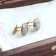 袖口鈕相傳起源於古希臘,是歐洲非常流行的男士時尚品。也許除了戒指之外,袖扣就是衡量男士品味的重要單品。這對袖口鈕是圓形的,中間有鑲金的星形設計,分隔出來的每一部分都有不同的雕刻,整體很有質感,絕對是品味的象徵,也是很適合新郎和伴郎的禮物。 產地:法國 年份:不明 材質:貴金屬 狀態:非常好,沒有明顯瑕疵 尺寸:直徑 2.5 cm *所有貨品於香港出貨 **復古品經過年月洗禮會有瑕疵,下單前請注意寶物狀態
