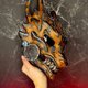 Each mask is handmade using high-strength, hypoallergenic resin, hand-painted with acrylics, and finished with a matte lacquer for durability. It includes a soft inner padding for comfort and comes with a wide strap and elastic bands for a snug fit.