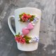 Today, the original cups have a special place in our lives, because they are used by absolutely everyone several times a day. This white ceramic mug will win hearts not only with its functionality but also with its design. The Mum tea cup is an example. With a personalized portrait from a photo, a funny inscription, or a drawing, all this differs from the banal grandmother's sets, where, except for flowers or rhombuses, there was nothing. In the MugsWorkshop online store, you can choose tea, hot cocoa, coffee mugs as a gift and please your loved one with your originality. ABOUT PRODUCT: • Decor is made from professional polymer clay and baked at a high temperature for hardness. • Using materials environmentally friendly, and do not harm your health. PLEASE NOTE: • Wash with warm water by hand, do not put in the microwave and dishwasher. • The color of the item may differ due to different settings of monitors of electronic devices and light conditions. • Any of our products can be personalized, write your wishes • Additional elements that are not present in the standard design are paid as extra details. We can make any mug with any image for you. Just contact us and describe your dream mug.