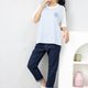 背後異材質短袖上衣 / 白藍條紋 透氣舒適,夏秋皆宜