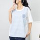 背後異材質短袖上衣 白藍條紋