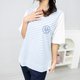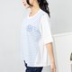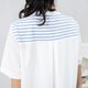 背後異材質短袖上衣 白藍條紋 - 女 T 恤 - 其他材質 白色