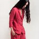 西服款式的休閒外套,修身版型,整體簡潔舒身。採用純棉淨包的縫合工藝,以增加工序和製作的繁瑣,讓內裡的隱藏處也精緻利落。領口、門禁、袖口、底擺均為放鬆的毛邊設計,保留原始布邊和不修邊痕跡,自然隨性。在做舊復古的紅色中,散發著溫柔又熱烈的氣息。