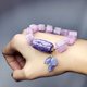 **1.圖上紫龍晶主珠長約27mm、寬15mm,貓眼紫鋰輝方塊約10.6mm,整體手圍約16.5cm。**