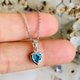 - 瑞士藍托帕石套裝,心型設計 項鍊吊墜鑲嵌一顆5毫米心形切割寶石。 鍊長:16英寸,另有2英寸可調節鏈。 耳環鑲嵌一顆4毫米心形切割寶石。