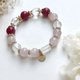【精靈花圈】玫紅色的薔薇輝石,粉粉嫩嫩的粉晶,帶藍暈月光石,以及特殊切割閃耀白水晶,彷彿戴上了精靈的花圈,奔赴一場愉快盛宴。水晶尺寸偏大,可愛又充滿能量,可以參考配戴圖(配戴圖手圍為14cm)。