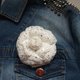 The camellia flower brooch is made of white tweed fabric with sequins. Elegantly and fashionably transform your favorite dress, jacket or bag.