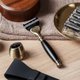 採用古銅刷色工藝搭配鋁合金材質,完美呈現男人品味的刀具,刀片採用歐洲鋼材製作而成,堅韌且鋒利的刀片使得刮鬍非常的輕鬆俐落,搭配安全裝置完美服貼肌膚角度讓刮鬍過程大幅降低受傷與鬍子拉扯的機率,全金屬材質刀身,完美的重量配比,手感操控性極佳,讓男人專屬的儀式感為您開啟每一天。