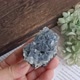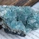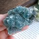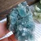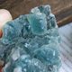 --螢石原礦型態多樣,用手電筒從側邊打燈,是漂亮的藍綠色