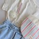 - 風格強烈、高彩度撞色直紋拼接圍兜 使用厚實柔軟的韓國製三層紗,吸水性極佳 是簡單有型、鮮明出眾的小時髦代表