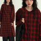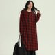 紅色格紋 學院格子襯衫連身裙 文藝復古休閒長袖長款洋裝