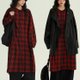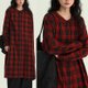 紅色格紋 學院格子襯衫連身裙 文藝復古休閒長袖長款洋裝 - 洋裝/連身裙 - 棉.麻 紅色