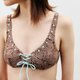 - Bikini bra features a square neckline with a front lace-up tie and secure clasp-back closure